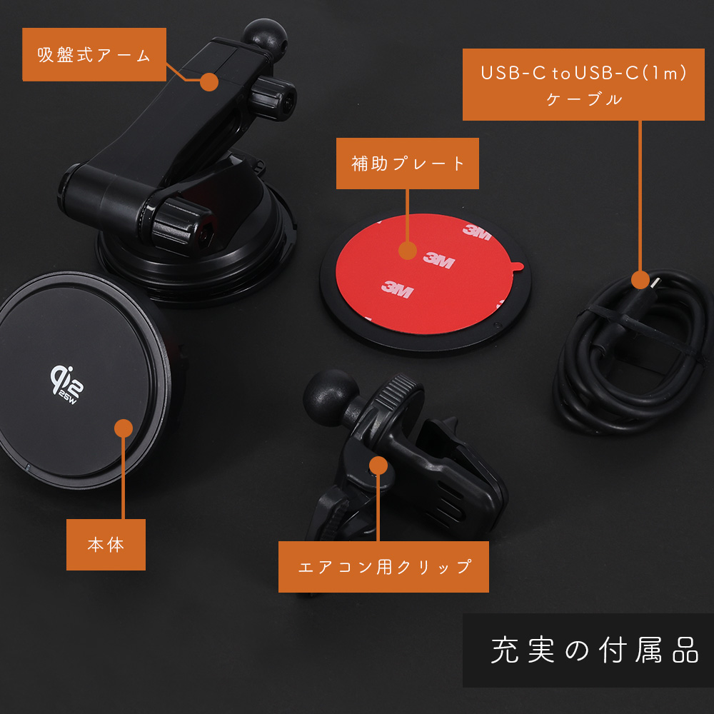 | 付属品 | 保証書兼取扱説明書、USB-C to USB-Cケーブル(1.0m)、吸盤式アーム、エアコン用クリップ、補助プレート |