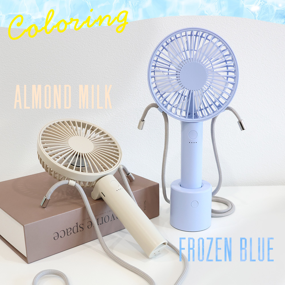 「スタンドに置いて卓上ファン」「外出時は手持ちファン」「付属ストラップで首掛けファン」と、シーンに合わせて3通りの使い方が可能です。